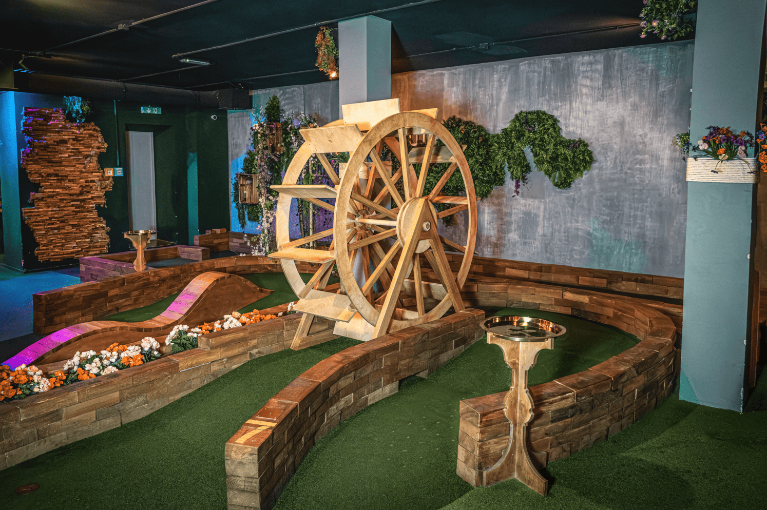 Get ready for a fun adventure on Turbulence, our exciting mini-golf course. It's packed with unexpected moments! Each of the 9 holes has its own fun twists and turns. You'll never know what's coming next, making the game really exciting!